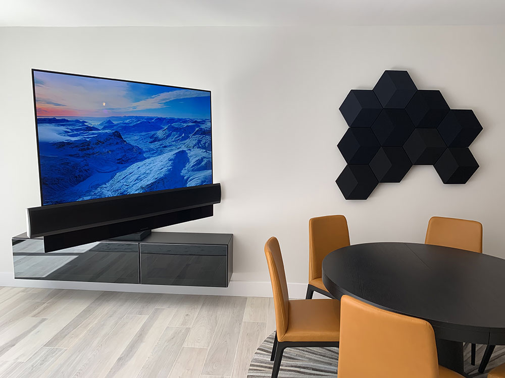 Seamless TV & soundbar wall-mounting with hidden cabling.